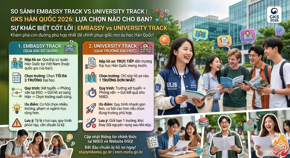 Học bổng GKS Hàn Quốc 2026 là cơ hội lớn nhưng cũng là cuộc cạnh tranh thật sự khốc liệt. Chuẩn bị sớm, chọn đúng track và tránh các lỗi cơ bản là ba yếu tố quyết định phần lớn tỷ lệ thành công của bạn.
